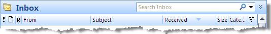 If you have one category you tend to use a lot, this is a nice feature. If like me you do not have a favorite category, you may want to turn Quick Click off. Do this using that same control shown above and choose No Category from the drop down list. And finally, there are keyboard shortcuts for instantly assigning categories (can be set for up to 10 categories). Note in the figures above how you can set those shortcuts. New Outlook Search Capability One more thing. With all this talk of using categories to file e-mails, what if you are like me these days and prefer to use bulk full-text searches rather than filing mail by topic? Well there is good news because Microsoft has added a true fast search engine that makes bulk searching for e-mails within Outlook truly practical. The search box is located just to the right of the folder name, at the top of the folder list display (see the faint Search Inbox label below for one example).